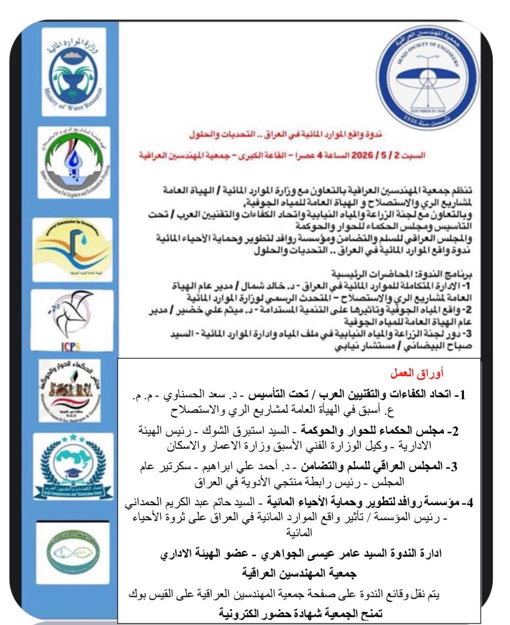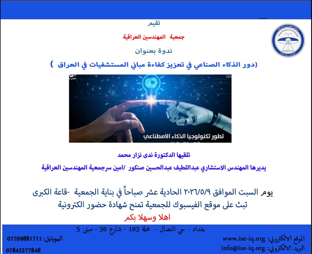 تقيم جمعية المهندسين العراقية ندوة تحمل عنوان(دور التشريعات القانونية في حماية الخصوصية الشخصية في انتهاكات الذكاء الاصطناعي