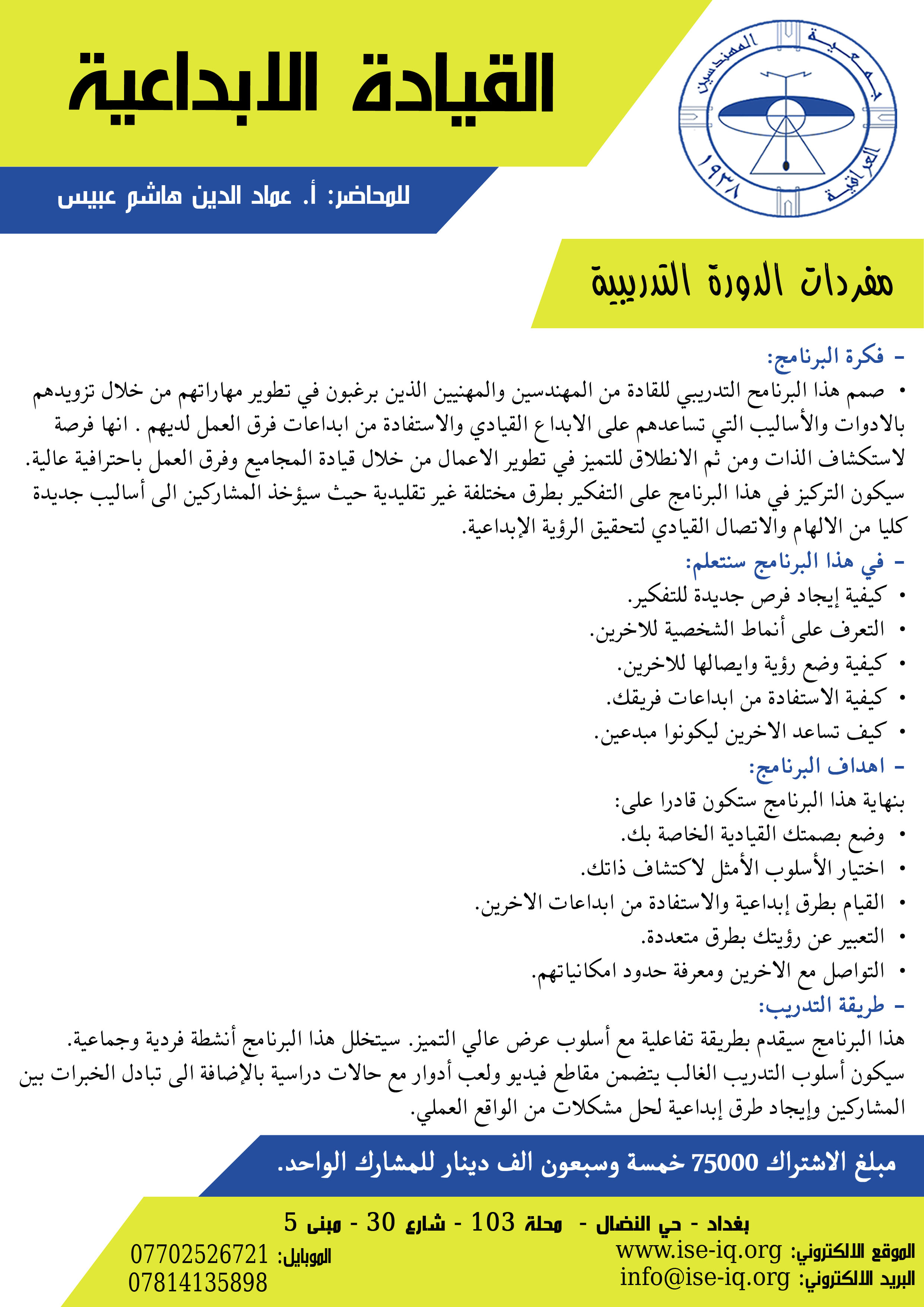 تقيم جمعية المهندسين العراقية دورة تدريبية بعنوان